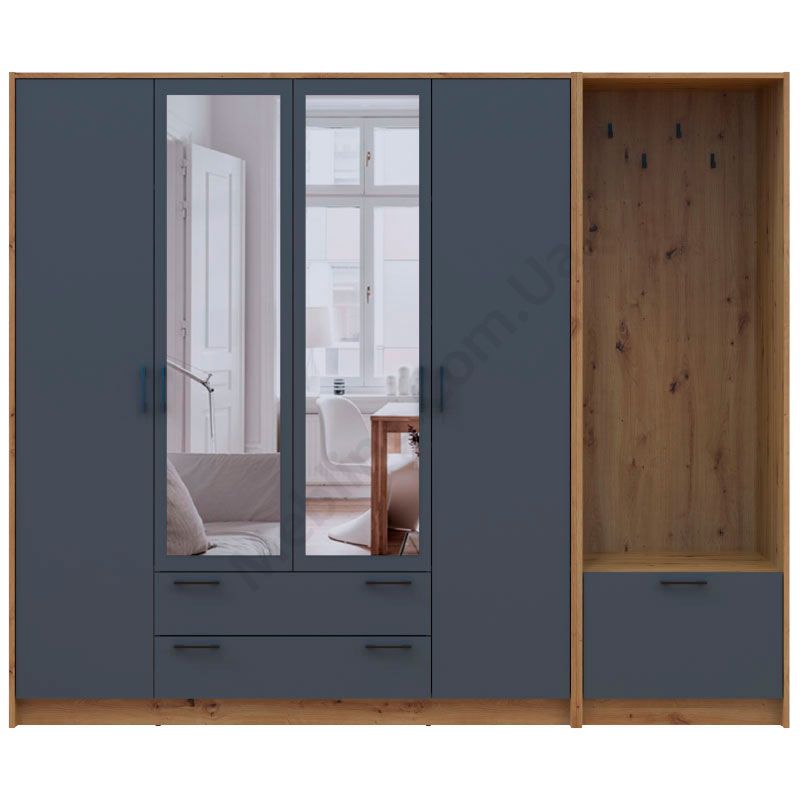 Розпашна чотиридверна шафа з вішаком та дзеркалом.