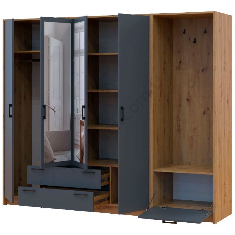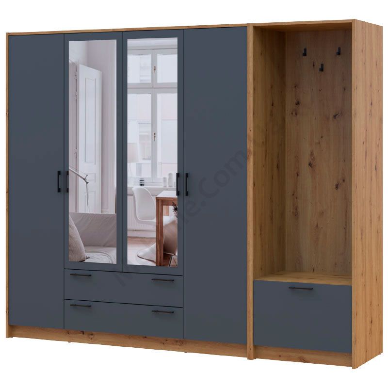 Шафа для одягу Ронді з вішалкою та дзеркалом 4 ДСП Дуб Артизан + Графіт - Doros