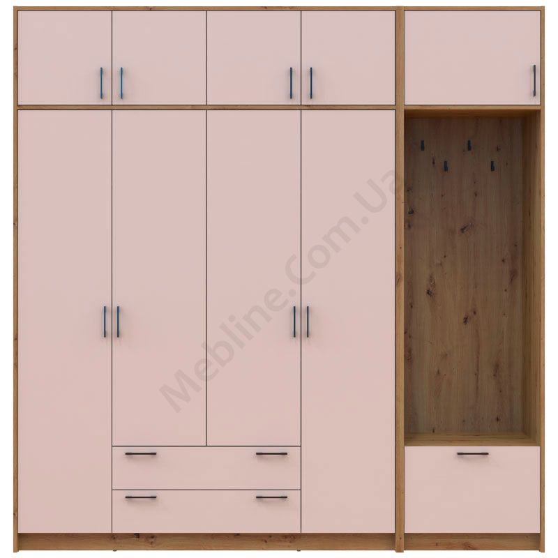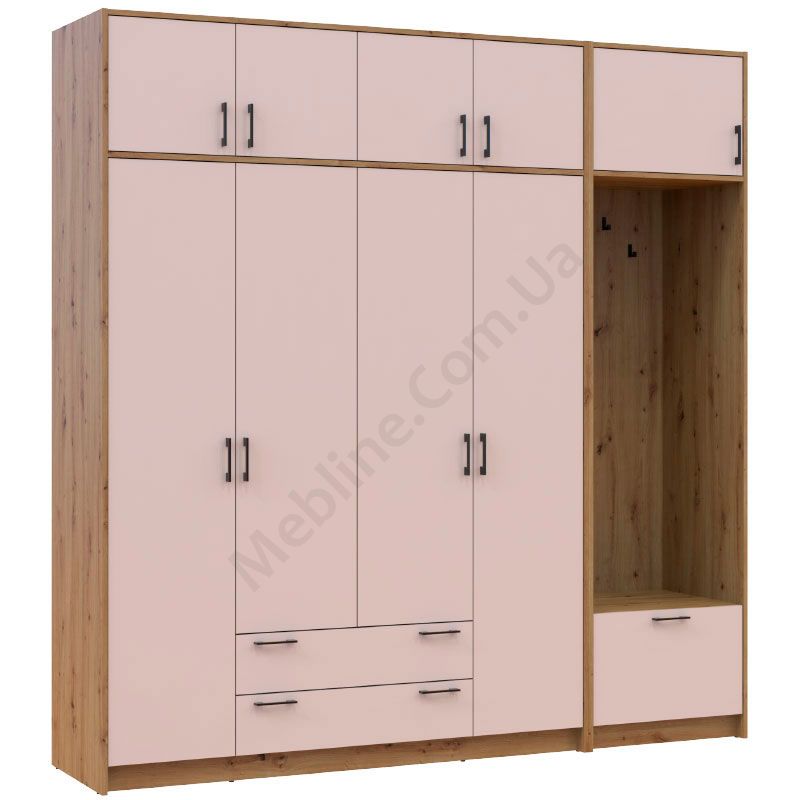 Розпашна чотиридверна шафа з вішаком та антресолею.