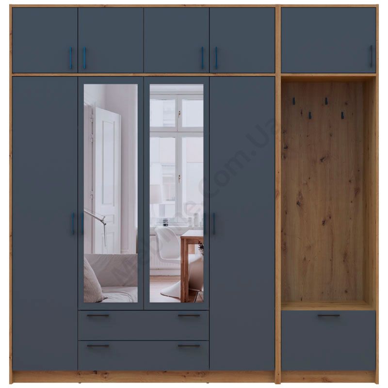 Розпашна чотиридверна шафа з вішаком, антресолею та дзеркалом.