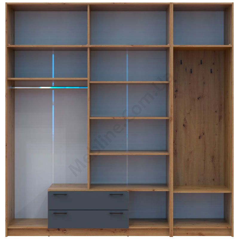 У магазині Ви можете купити Шафа для одягу Ронді з вішалкою, дзеркалом та антресолею 4 ДСП Дуб Артизан + Графіт за доступною ціною та доставкою по всій Україні. Обирайте Прямий передпокій від фабрики Doros для облаштування передпокою в інтернет магазині меблів.
