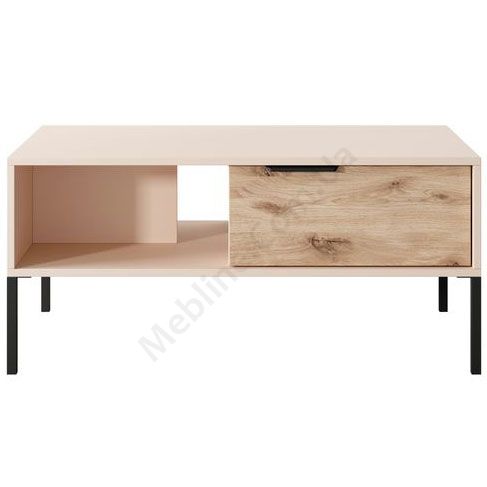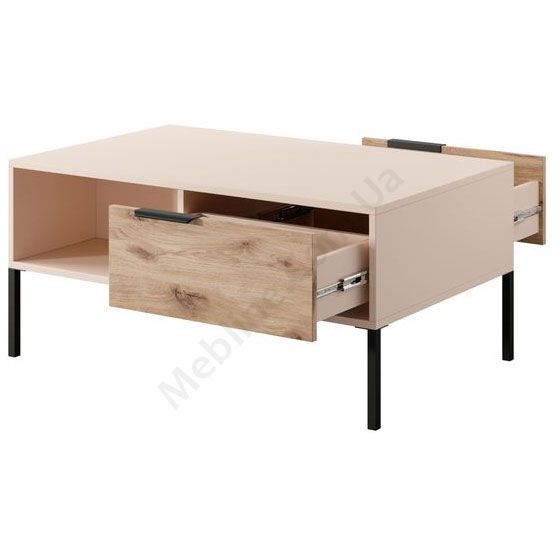 Журнальний стіл з висувними шухлядами та відкритими полицями.