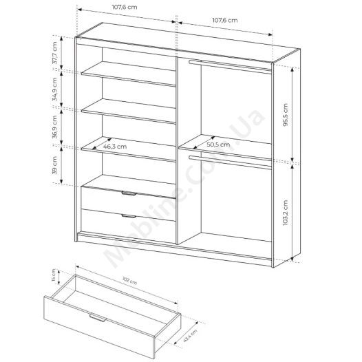 - Знизу дві висувні шухляди.