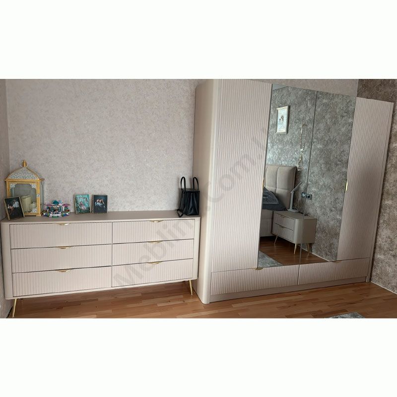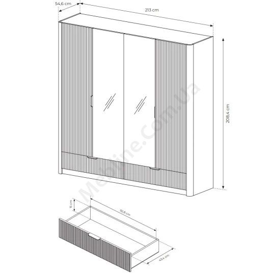 Чотиридверна шафа з висувними шухлядами та дзеркалом.