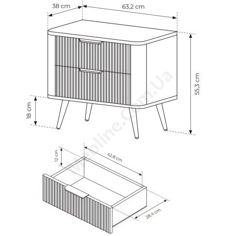 Приліжкова тумба на ніжках з висувними шухлядами.