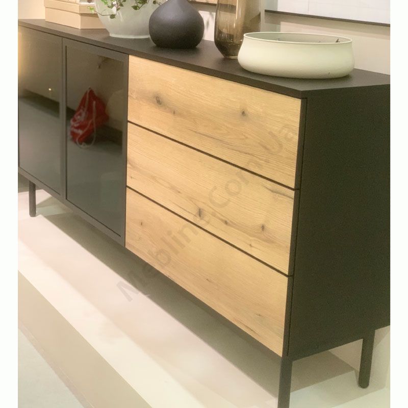 Комод-вітрина зі скляними дверцятами та висувними шухлядами.