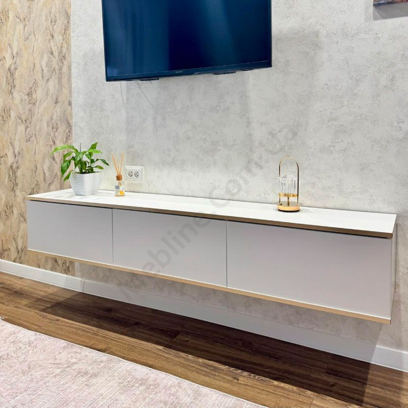 Навісна тумба під телевізор з трьома дверцятами.