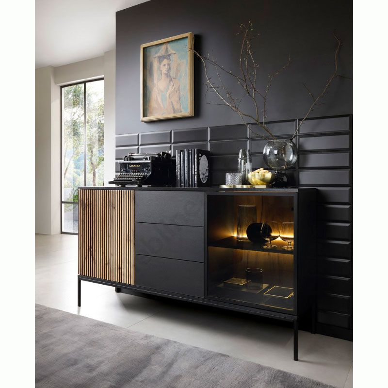 Комод-вітрина зі скляними та глухими дверцятами і висувними шухлядами.