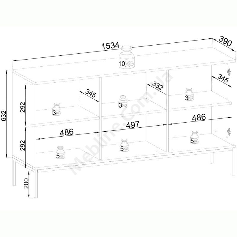 - За дверцятами по одній полиці.