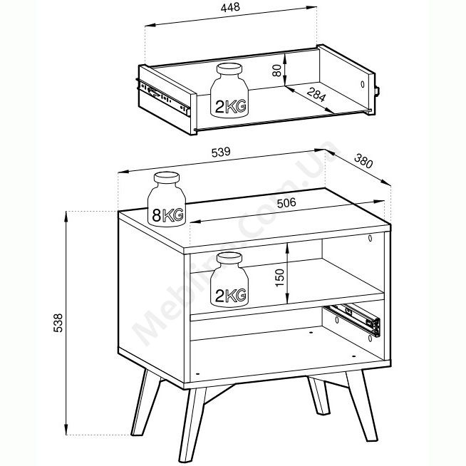 - Виготовлена з ламінованої ДСП, завтовшки 16 мм.