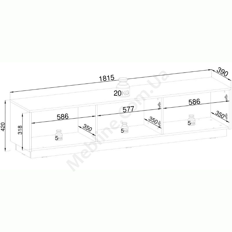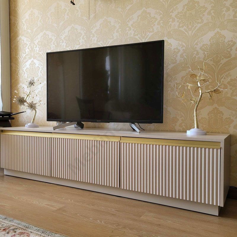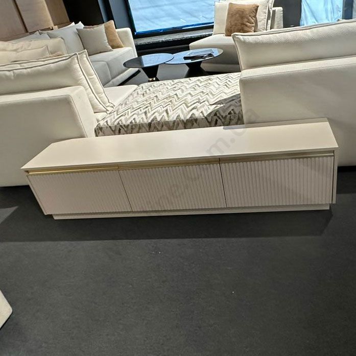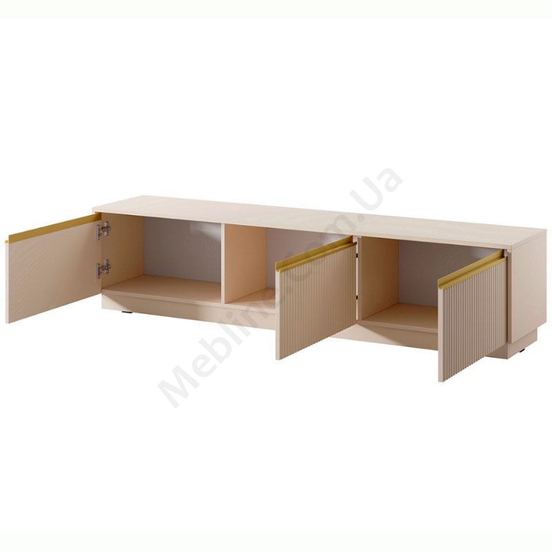 Тумба під телевізор з трьома дверцятами та рифленим фасадом.