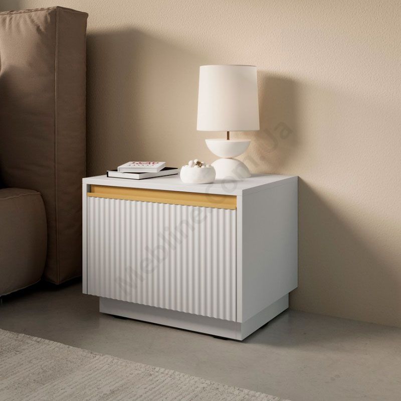 Приліжкова тумба з висувною шухлядою та рифленим фасадом.