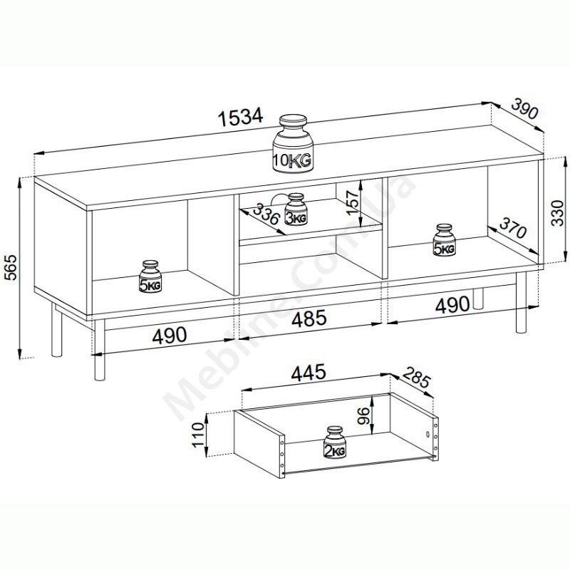 Тумба під телевізор з дверцятами, шухлядою та полицею.