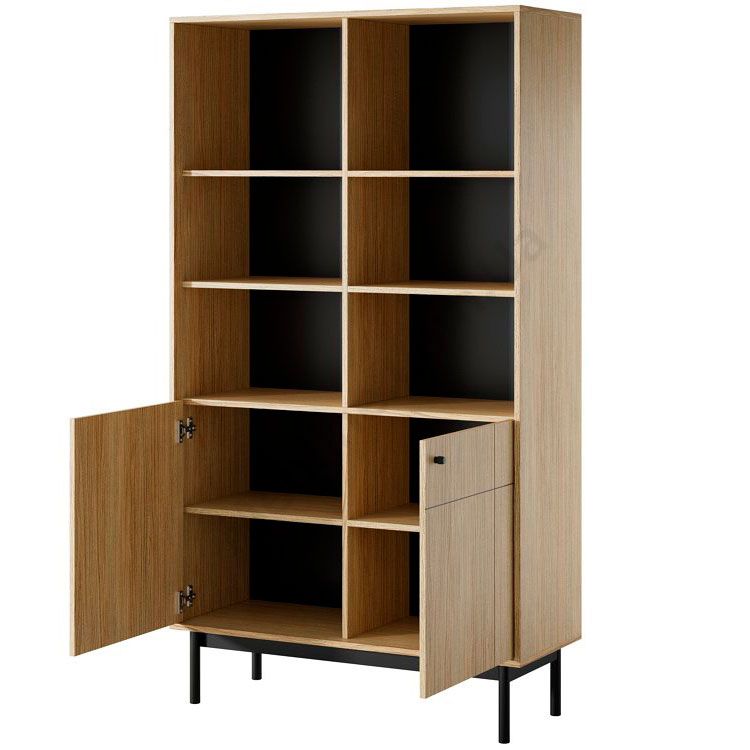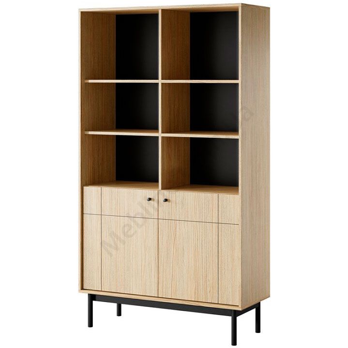 Стелаж з дверцятами та відкритими полицями.