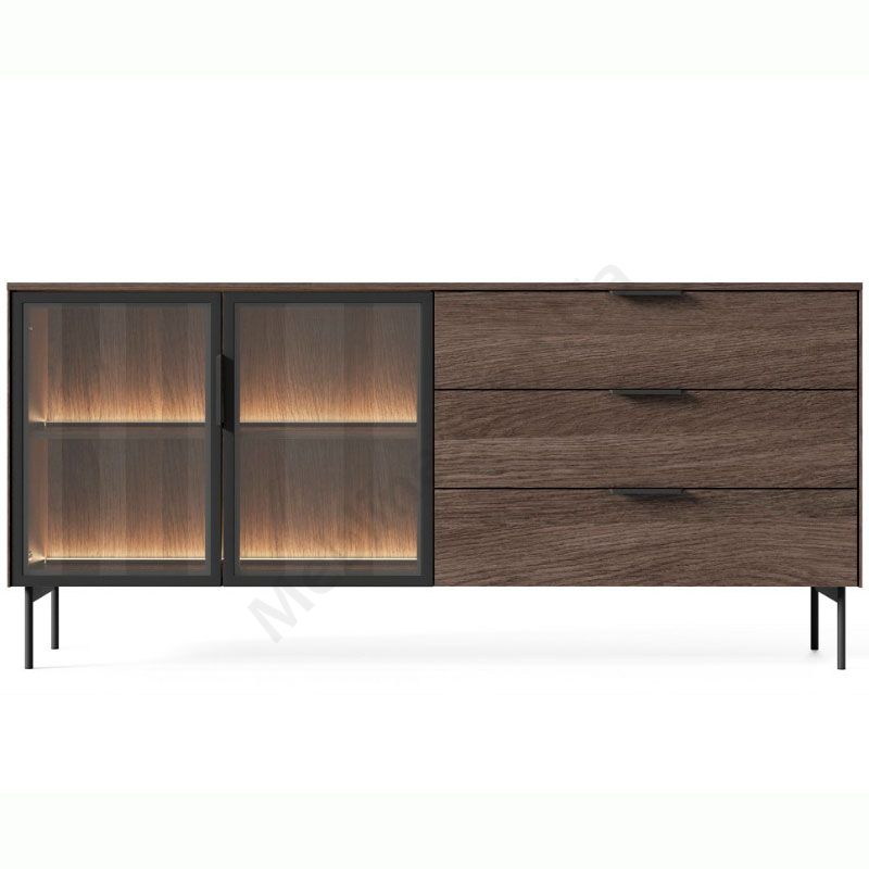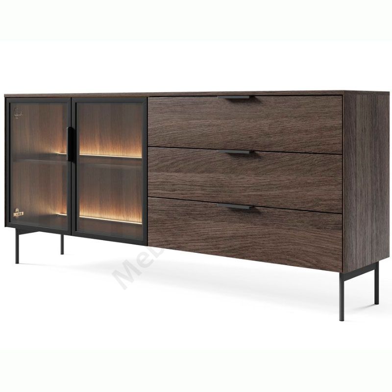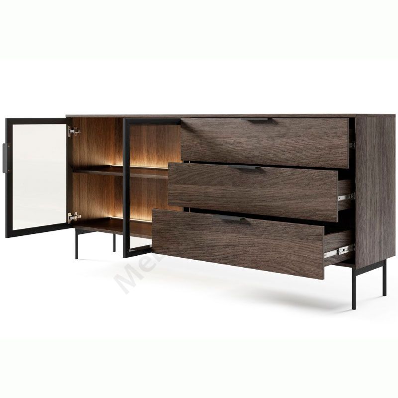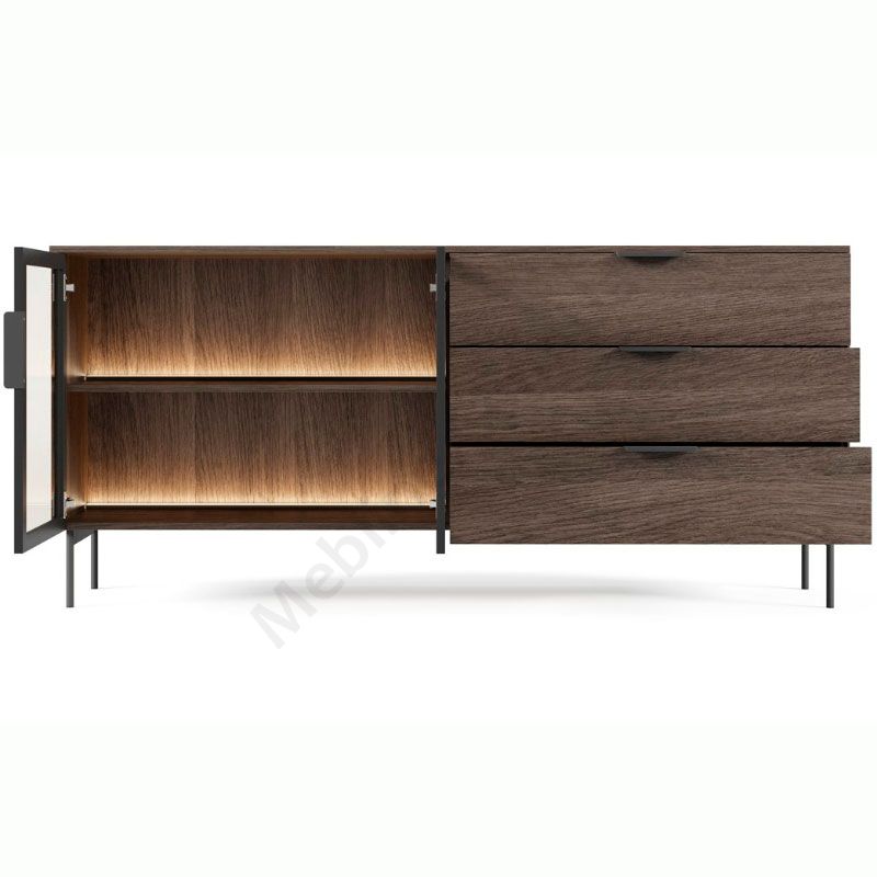 Комод-вітрина з підсвічуванням, дверцятами та висувними шухлядами.