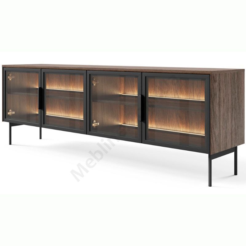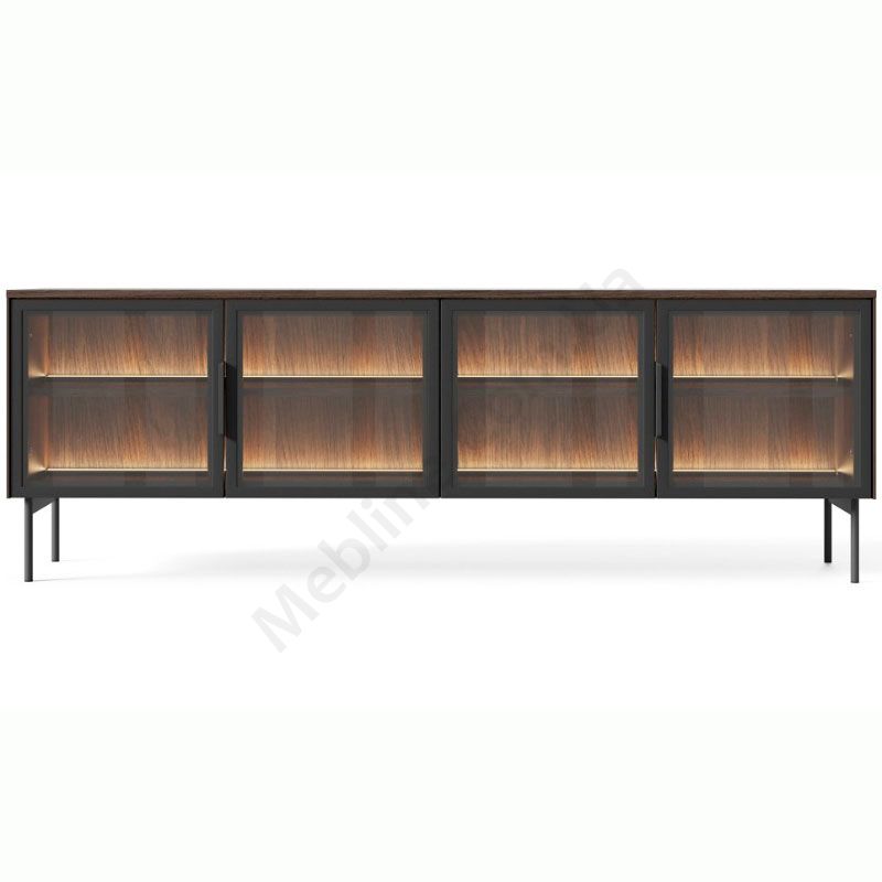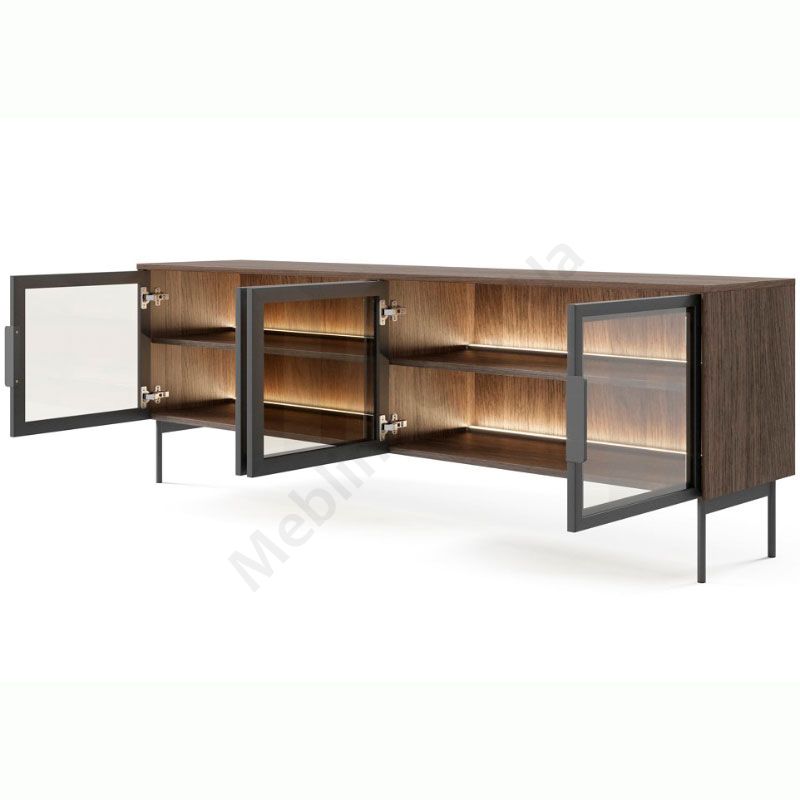 Тумба-вітрина під телевізор з підсвічуванням та чотирма скляними дверцятами.