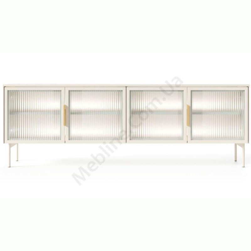 Тумба-вітрина під телевізор з підсвічуванням та чотирма скляними дверцятами.