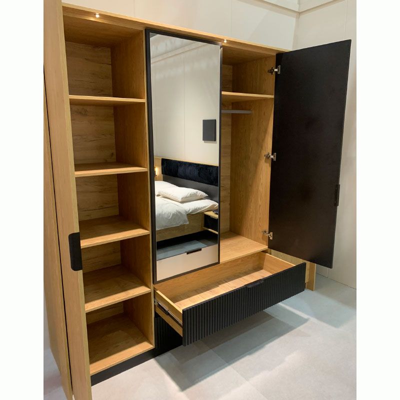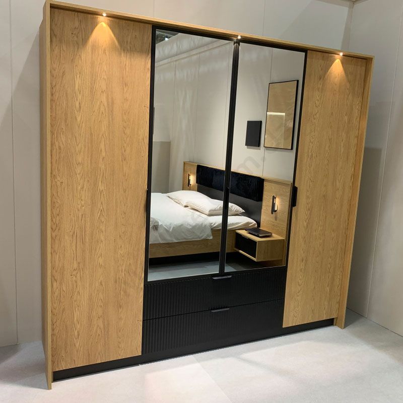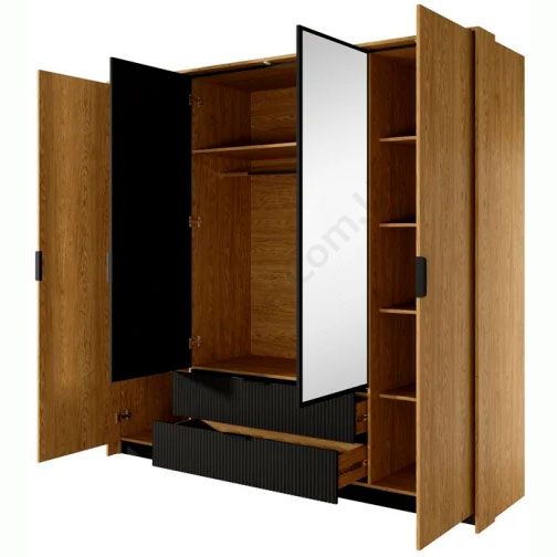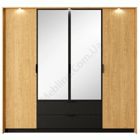 Чотиридверна шафа з висувними шухлядами та дзеркалом.