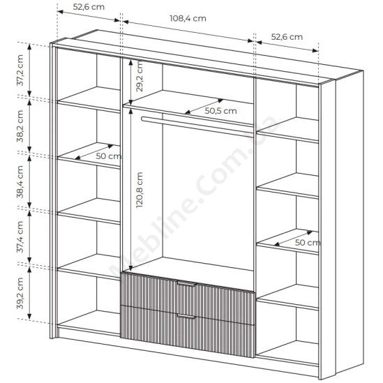 - За середніми — штанга для одягу та верхня полиця.