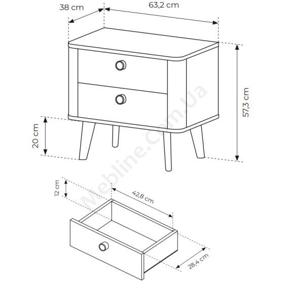 Приліжкова тумба на ніжках з висувними шухлядами.