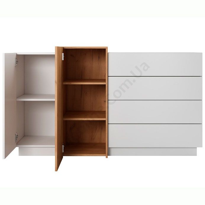 Комод з двома дверцятами та чотирма висувними шухлядами.