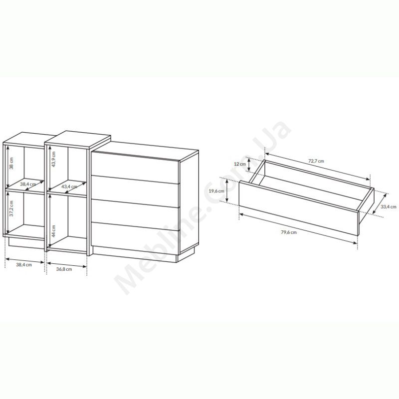 - Чотири висувні шухляди.