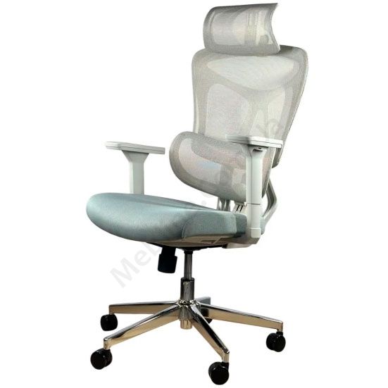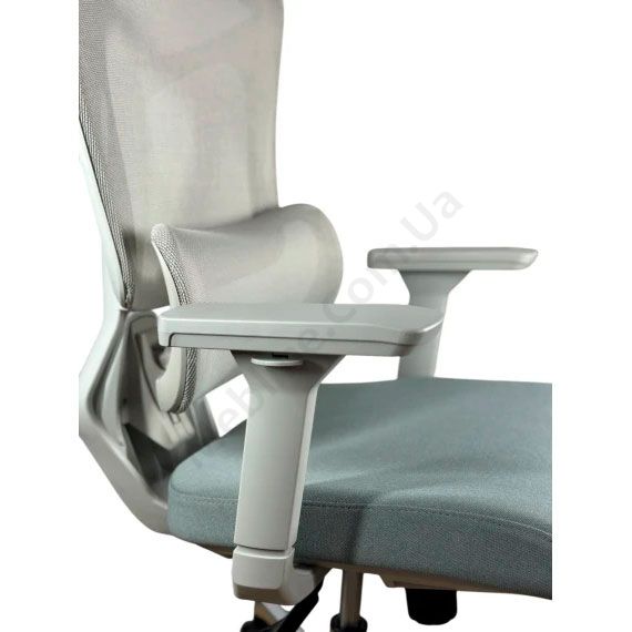 Комп’ютерне крісло з регульованими підлокітниками та підголівником і поперековою підтримкою.