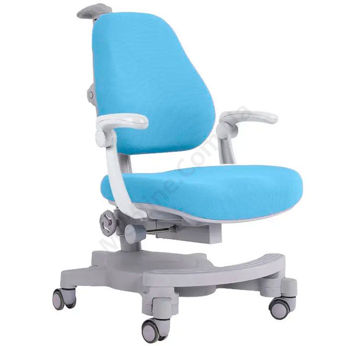 Ортопедичне крісло для школяра блакитного кольору з підлокітниками, регулюванням висоти та глибини.