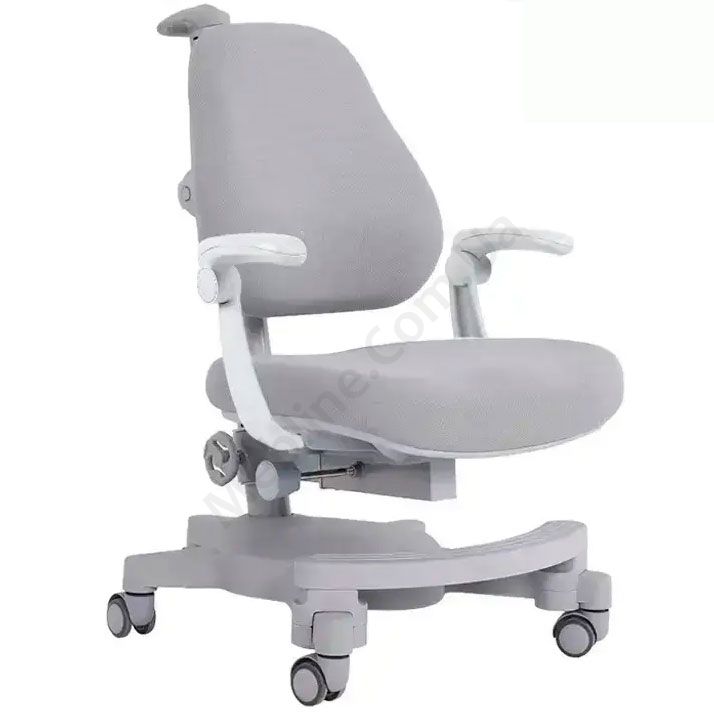 Ортопедичне крісло для школяра сірого кольору з підлокітниками, регулюванням висоти та глибини.