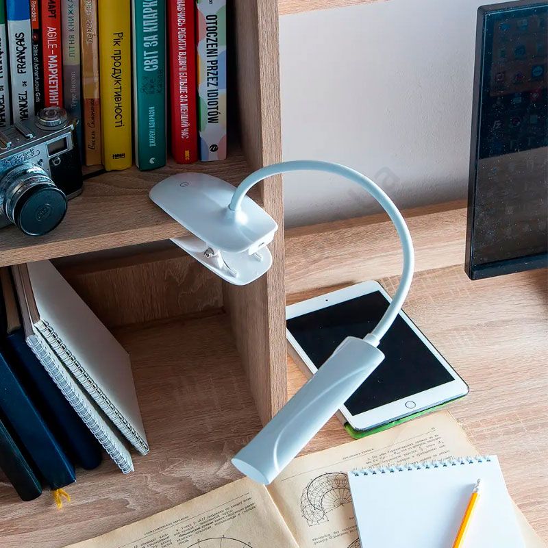 Гнучка настільна світлодіодна лампа з кріпленням прищіпка.