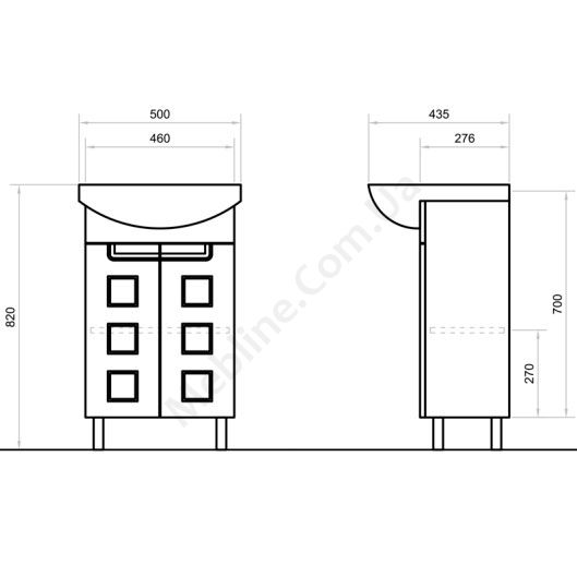 - Розмір тумби без умивальника — 460х276х800 мм.
