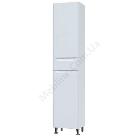 Пенал для ванної з двома дверцятами, висувною шухлядою та полицями всередині.