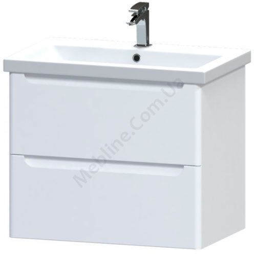 Навісна тумба для ванної з умивальником та висувними шухлядами.