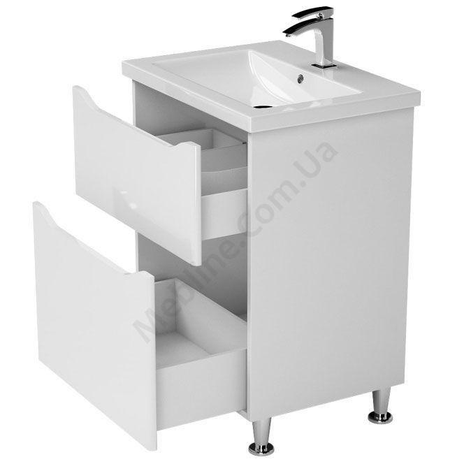 Тумба для ванної на ніжках з умивальником та висувними шухлядами.