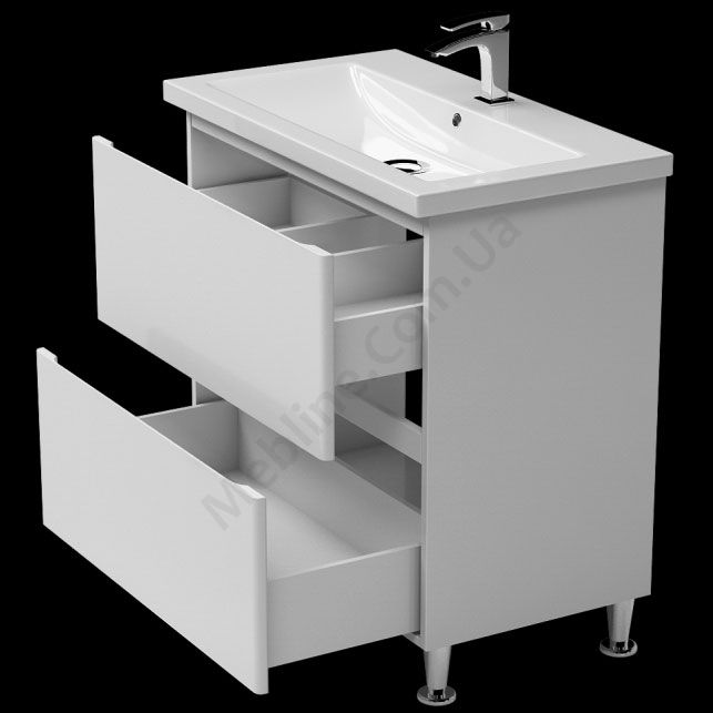 Тумба для ванної на ніжках з умивальником та висувними шухлядами.