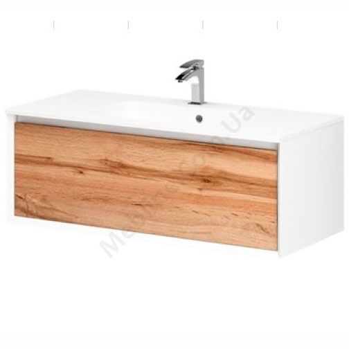 Навісна тумба для ванної з умивальником та висувною шухлядою.