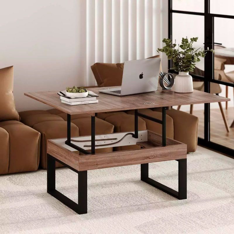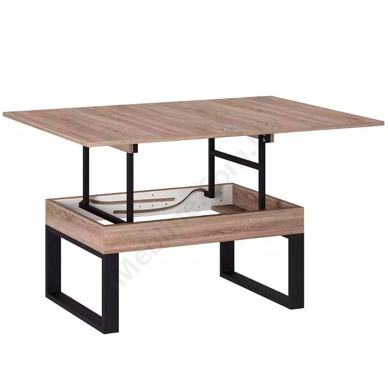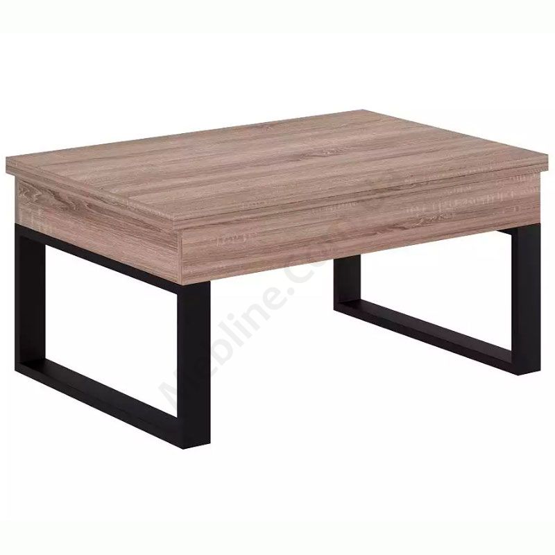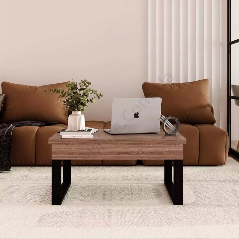 Журнальний стіл на чорних мталевих ніжках, який трансформується в обідній з ДСП стільницею кольору дуб вінтаж оксид.