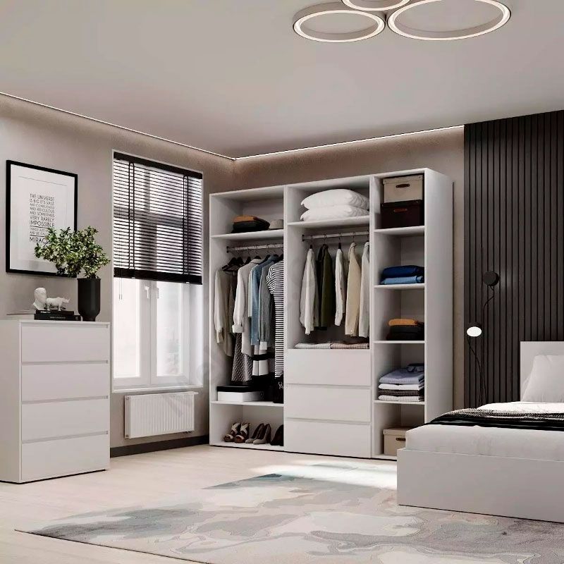 - За лівими — штанга для одягу та дві полиці.