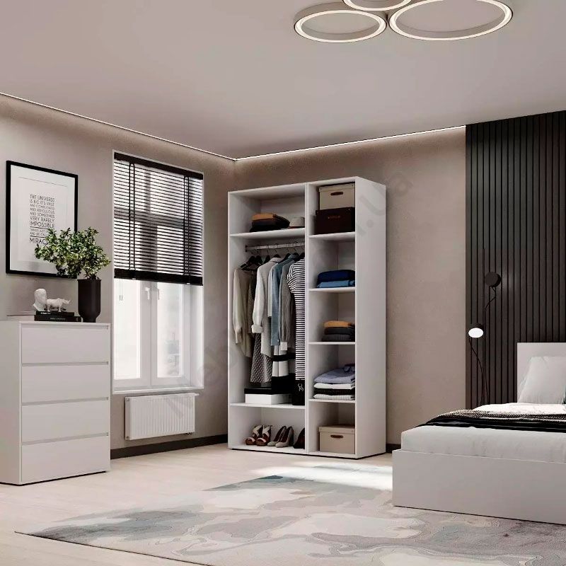 - За двома дверцятами штанга для одягу та дві полиці.