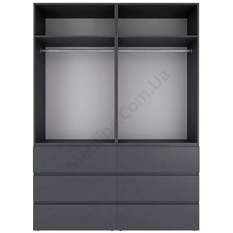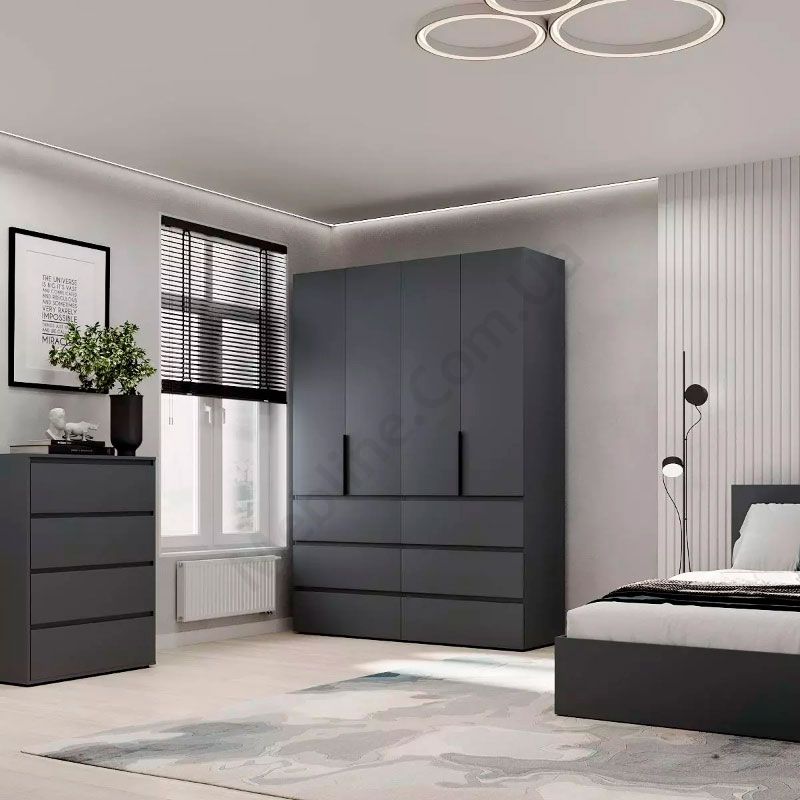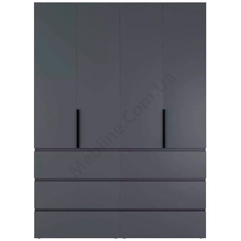 Чотиридверна платтяна шафа з висувними шухлядами.