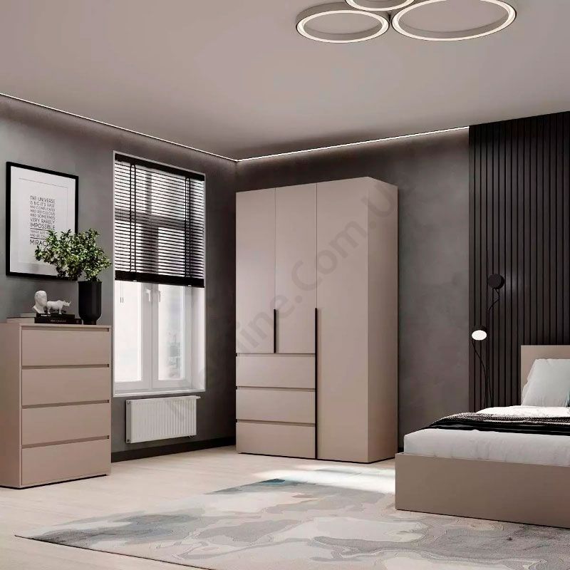 Тридверна платтяна шафа з висувними шухлядами.