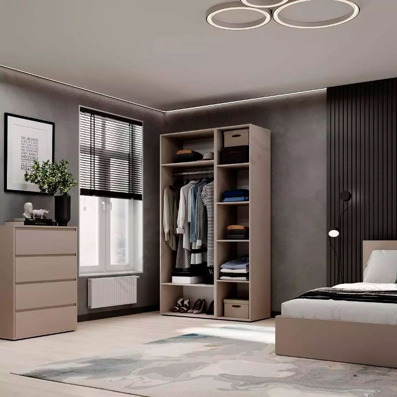 - За двома дверцятами штанга для одягу та дві полиці.
