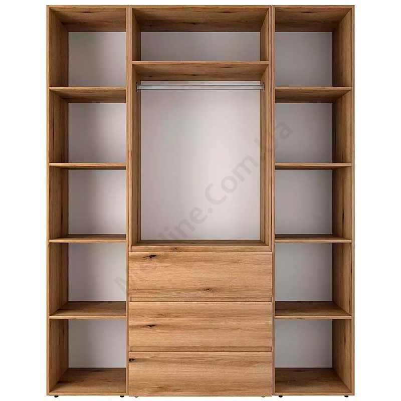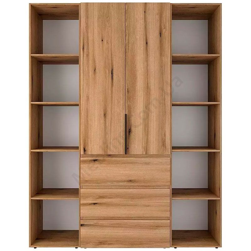 Дводверна шафа з відкритими полицями та висувними шухлядами.