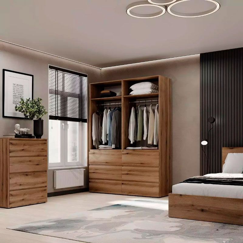 Чотиридверна платтяна шафа з висувними шухлядами.