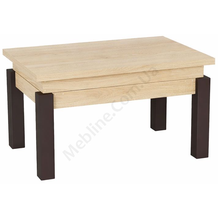 Журнальний стіл на дерев’яних ніжках венге, який трансформується в обідній з ДСП стільницею кольору дуб арена.