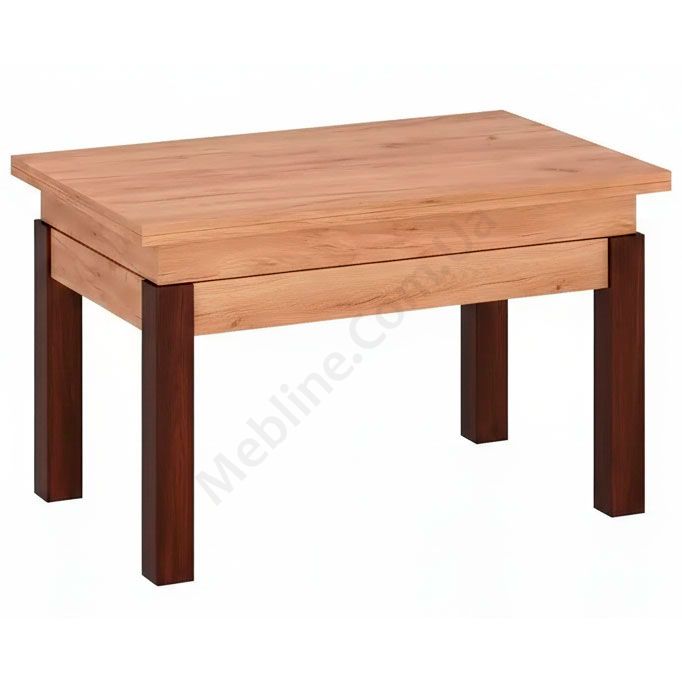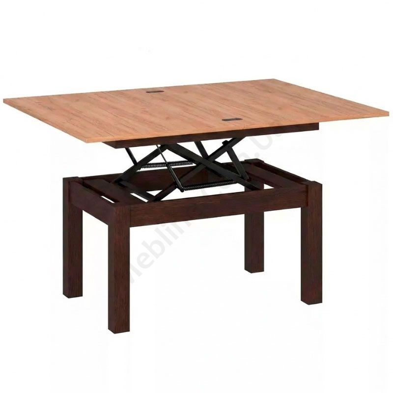 Журнальний стіл на дерев’яних ніжках венге, який трансформується в обідній з ДСП стільницею кольору дуб крафт золотий.