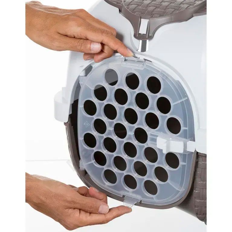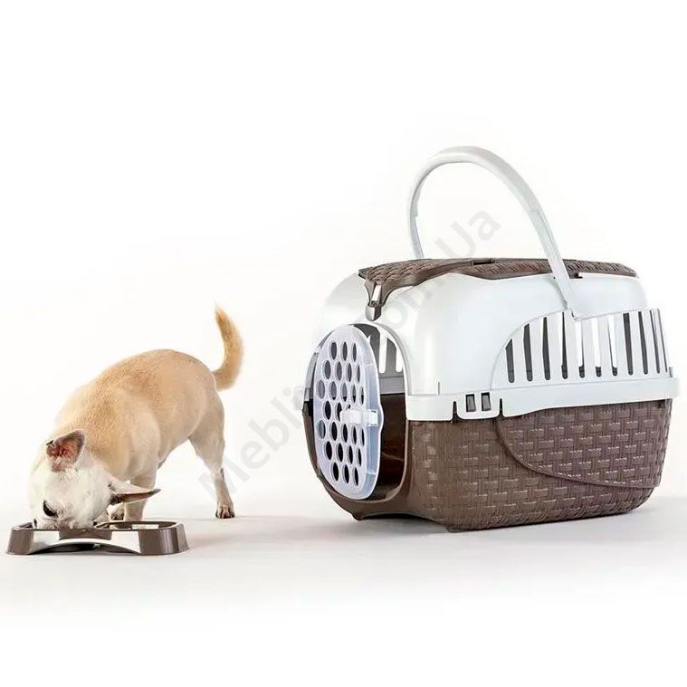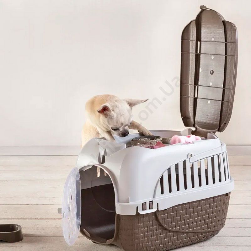 Пластикова переноска для тварин з відсіком для аксесуарів.