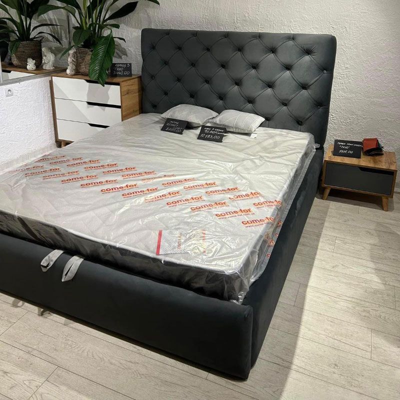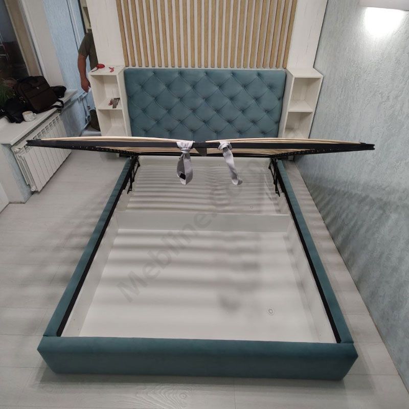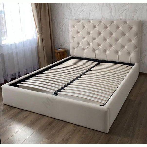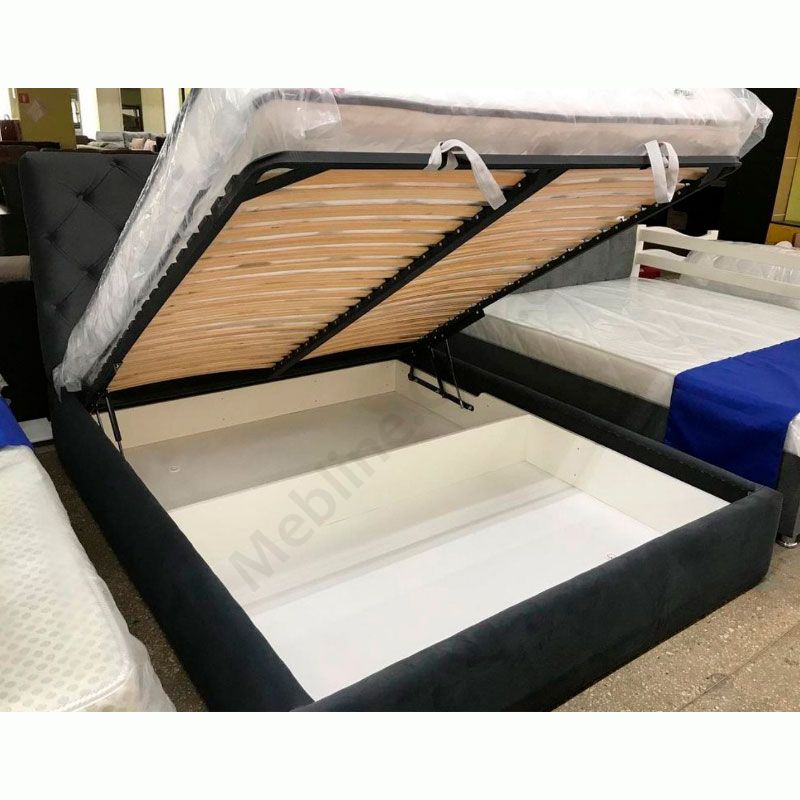 М’яке ліжко з підйомним механізмом та ламелями на металевому каркасі.