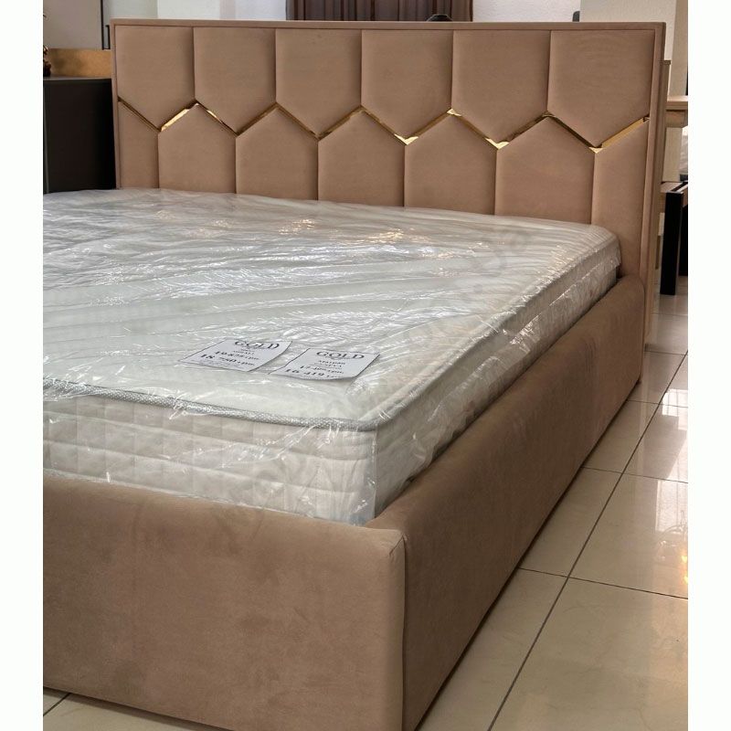 М’яке ліжко з підйомним механізмом та ламелями на металевому каркасі.