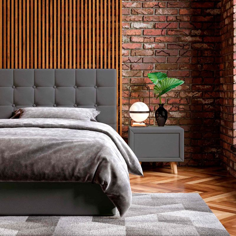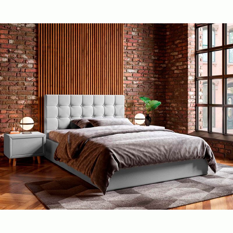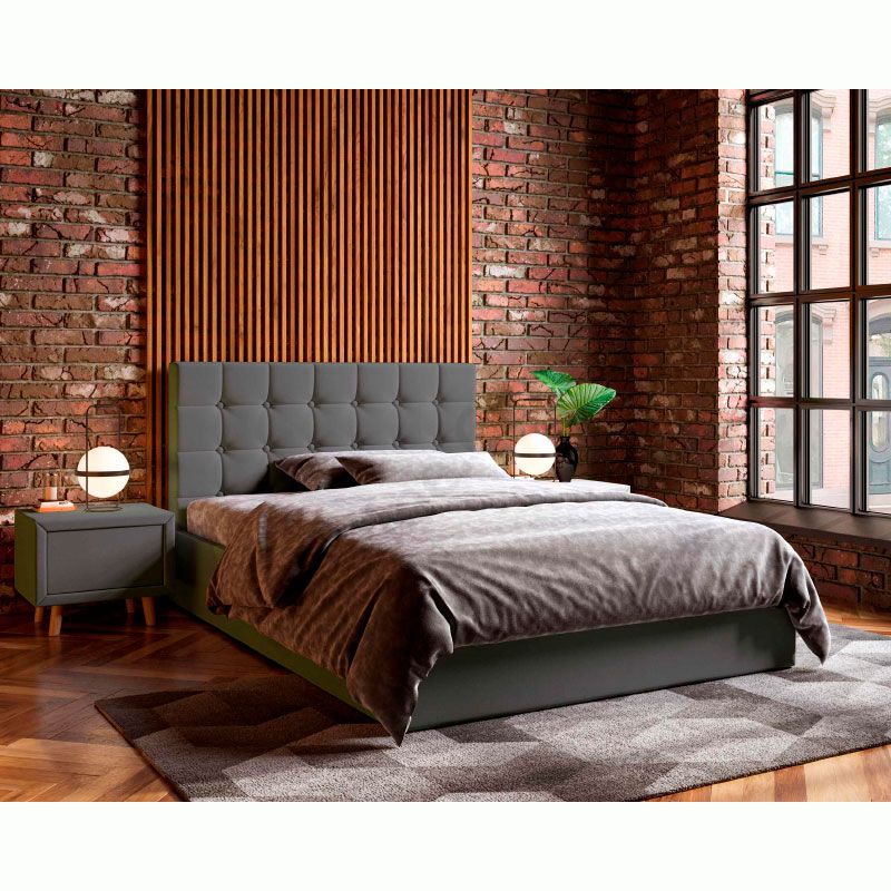 М’яке ліжко з підйомним механізмом та ламелями на металевому каркасі.